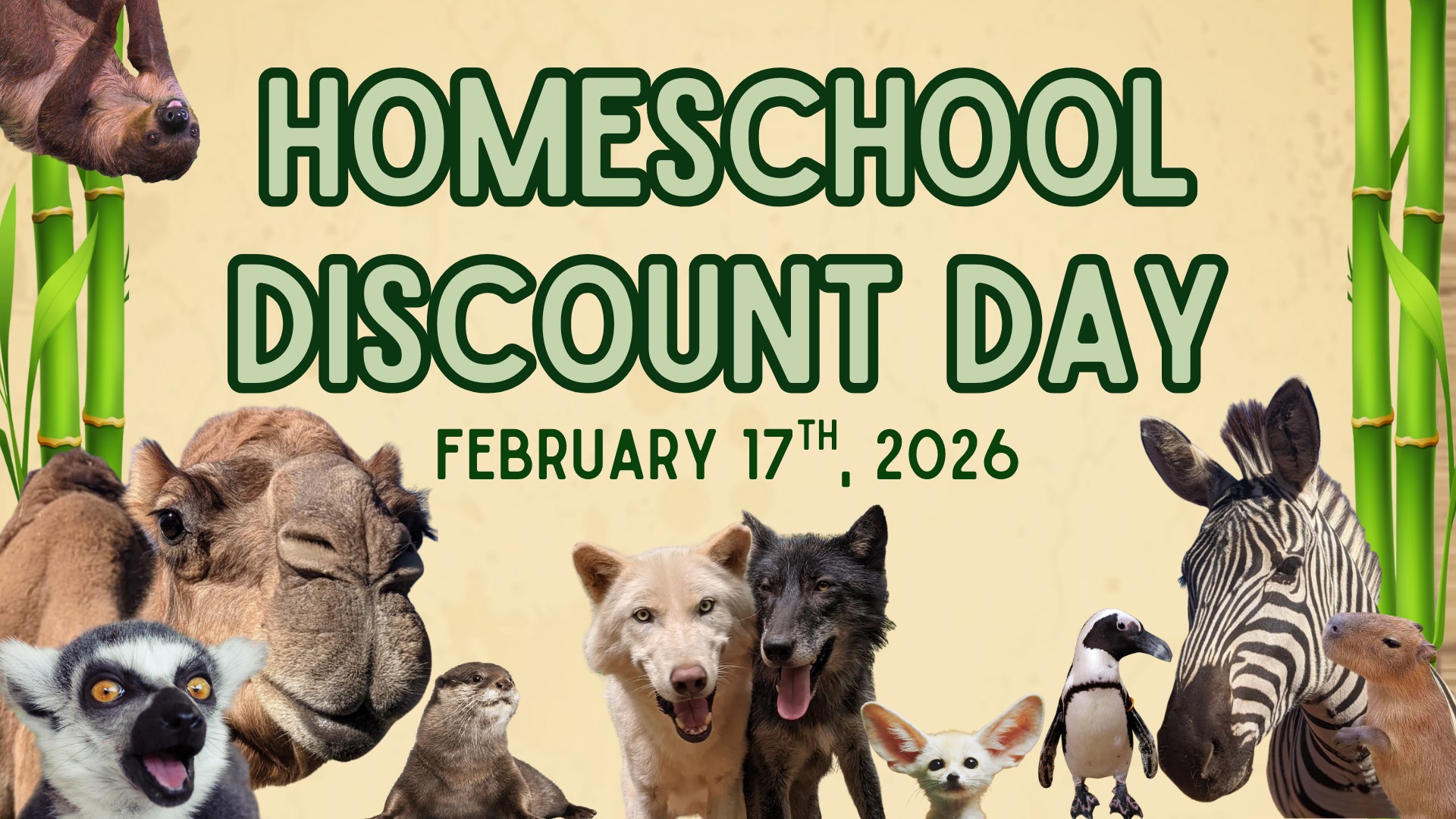 Bring your teachings to life at NOGAWILD! ​Join us for Homeschool Day and learn all about the animal kingdom. Bring your students to see wolves, capybaras, camels, snakes, hornbills, and