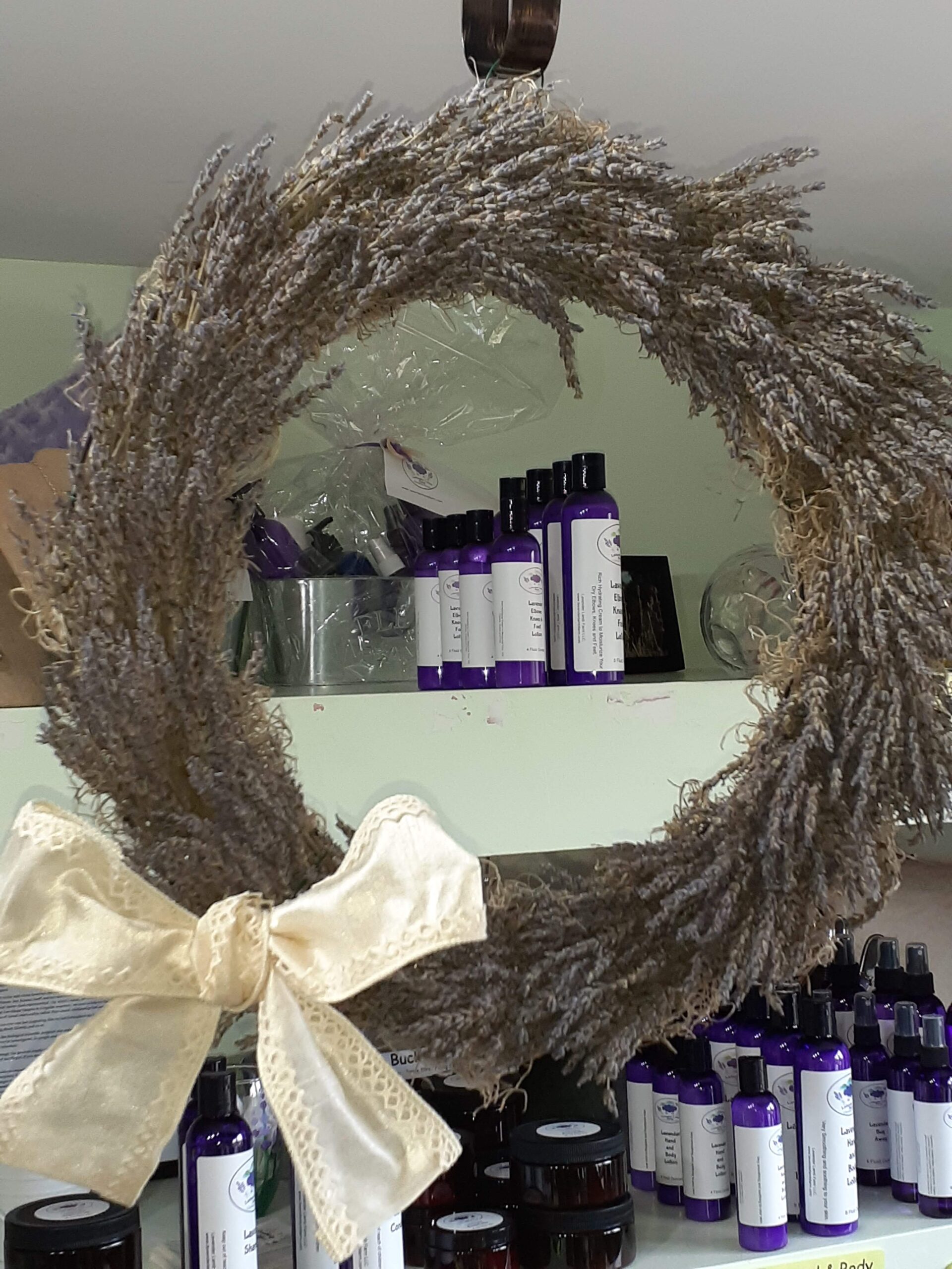 You will be given everything you need to create a beautiful Dried Lavender Wreath, You will start with either an 8″ wire frame (yields 8″ – 9″ wreath) or a 14″ wire frame (yields 15″ – 16″ wreath), you pick the size & price when you check out. This class will make a Lavender Wreath as pictured. You will enjoy a Lavender beverage and snack while creating your wreath. All while enjoying our amazing mountain view and fresh air here on the farm. This event is for ages 12 and older. Tickets available on our website: www.lavenderlambfarm.com