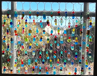 You will be shown how to choose or make a frame for your suncatcher, how to attach the “wire canvas”, how to create bead supports, choose beads, assembly, and suggestions for displaying your masterpiece when you get home. The supply fee includes everything needed: a wooden frame (you may choose from a variety of different sizes and shapes), wire supported canvas, a beautiful assortment of approximately 300 beads with support pins and attachment rings and 2 eye rings to hang the finished artpiece. The instructor will have an assortment of tools needed that students can borrow during class.
