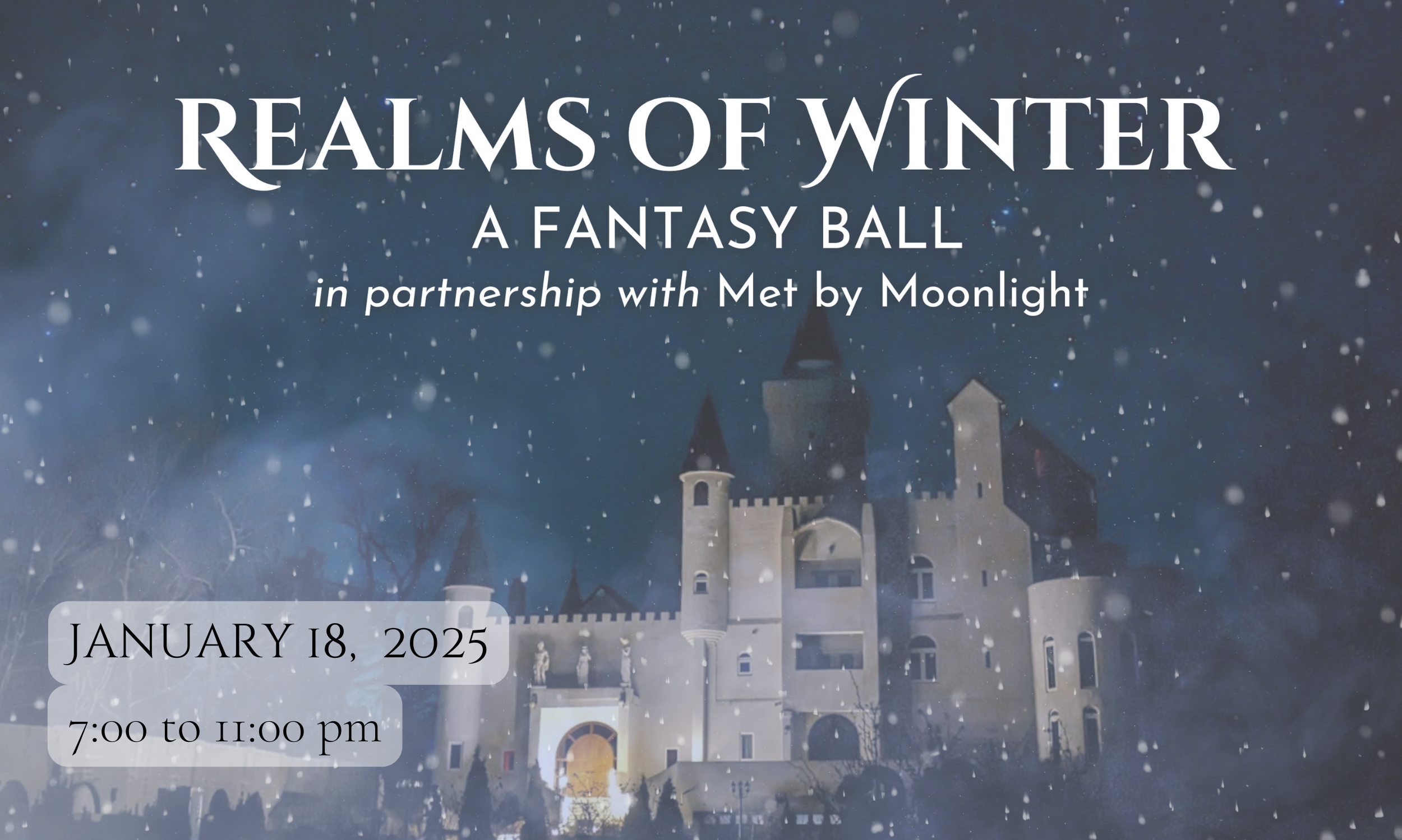 SOLD OUT Met by Moonlight is pleased to partner with Uhuburg Castle in Helen, GA for a ball during their Castle Faire weekend. Don your fantasy finest and join us for an evening of wintry splendor. This is a reception-style event with a focus on dancing and limited seating. We will have live entertainment and a DJ. This event is 21+.